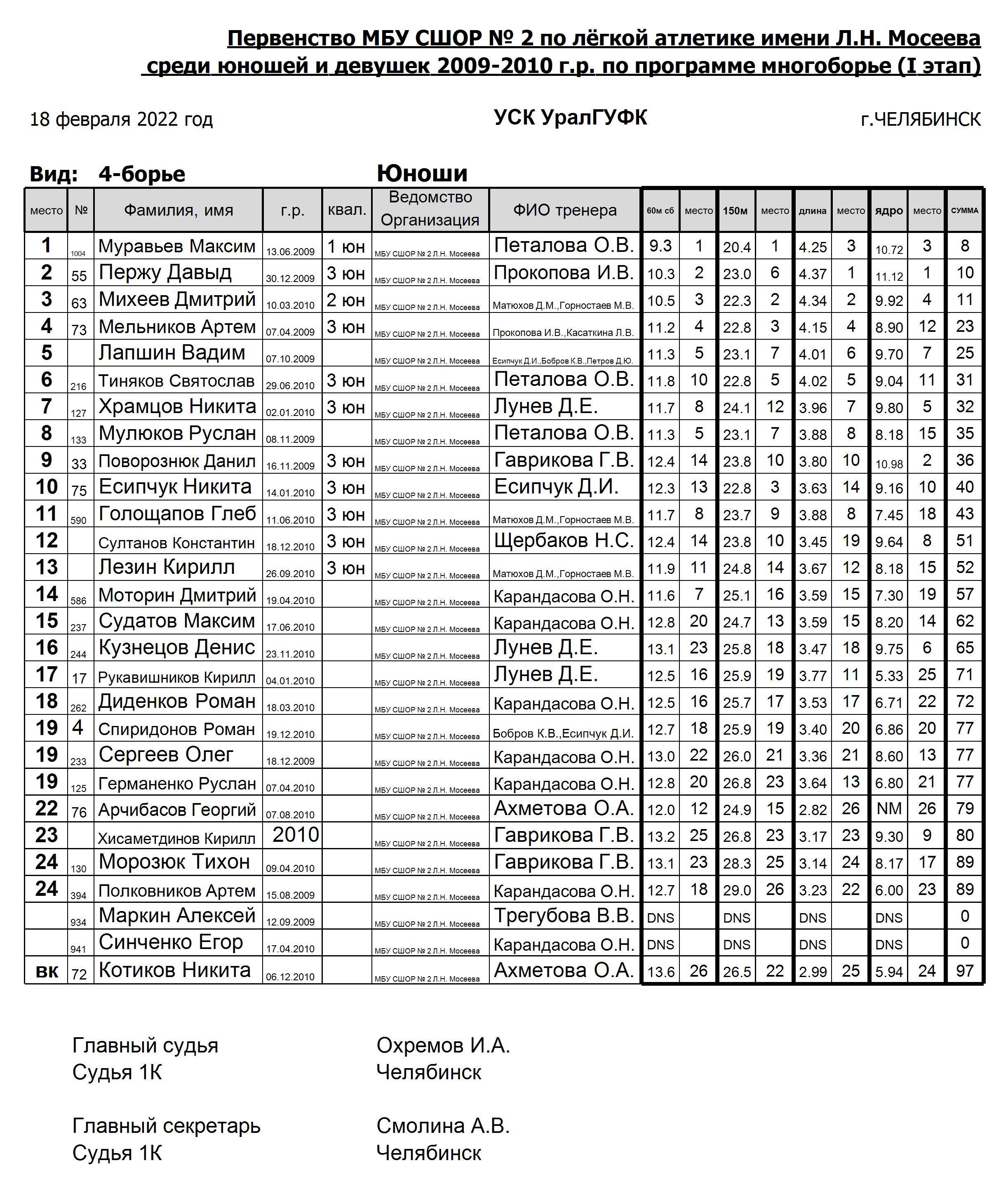 Первенство СШОР-2 по четырехборью "Шиповка юных" (юноши и девушки (до 16 лет) 2010-2011г.р., юноши и девушки (до 14 лет) 2012-2013г.р., мальчики и девочки (до 12 лет) 2014-2015г.р.)