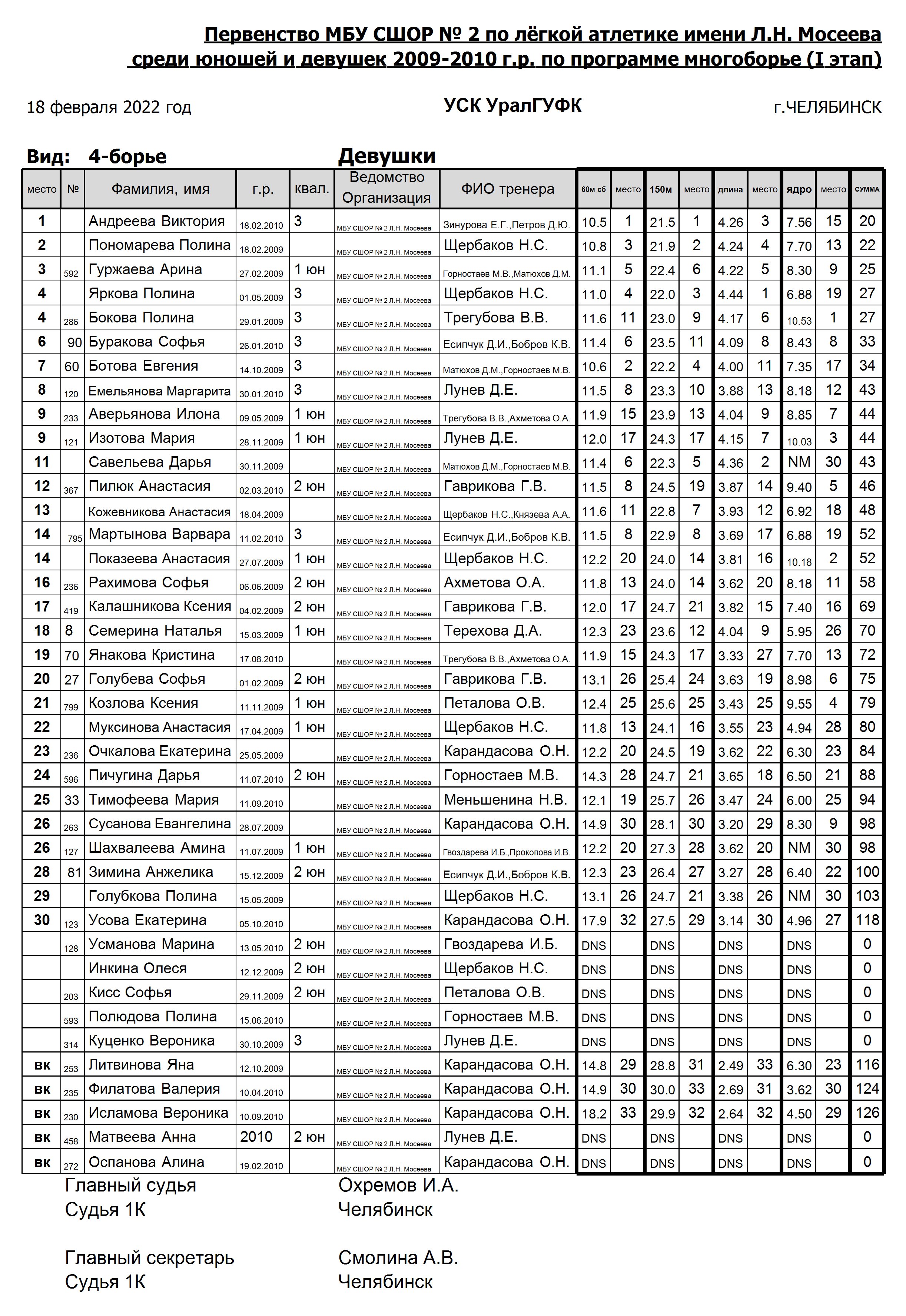 Первенство СШОР-2 (юноши и девушки 2009-2010г.р. (до 18 лет)).